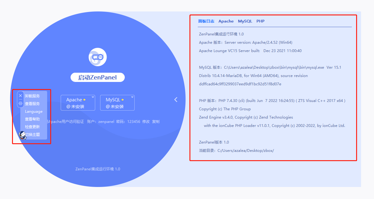 下载ZenPanel安装包后,解压获取到zbox文件夹,双击zbox.exe即可启动。